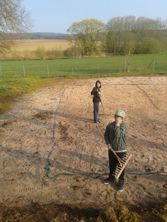 | Eine Gruppe Jungen aus den Klassen 5 und 6 bereiteten Salate zu, backten Pizza und Waffeln. Die Jungen der Klassen 7 und 8 säuberten den Schulweg zum Sportplatz und den Kantorsrangen. Anschließend pflegten sie die Blumenanlagen der Schule und fegten den Schulhof. (Erik W. und Eike N.) |