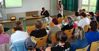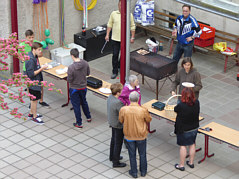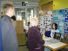Unter anderem wurde diesmal unser Kooperationspartner, die Nonne-Schule ausgezeichnet. Da unsere Schule das Q-Siegel bereits im Vorjahr bekommen hatte, waren wir nur mit einem kleinen Präsentationsstand an der Veranstaltung beteiligt. Wie man sieht, weckte unser Stand durchaus reges Interesse. | ![]() |