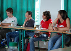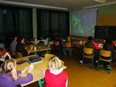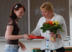 | Im Schuljahr 2005 errang unsere Schule das Q-Siegel als "Berufswahlfreundliche Schule". Die gestellten Anforderungen wurden zu 100 % erfüllt. Mit der Verleihung des Siegels war das Sponsoring dieser zwölf neuen Flachbildmonitore für das Computerkabinett verbunden. Sponsor ist die Aesculap GmbH Suhl. In den Herbstferien wurde die neue Technik installiert. Die Arbeit an den Schülerplätzen hat sich entscheidend verbessert. |