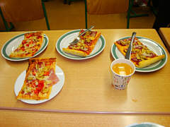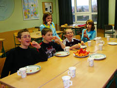 . Nachdem wir alle Stationen hatten, gab es Mittagessen. 1 ½ Stunden Wartezeit. Nachfolgend Siegerehrung. Ende 1. Platz. Schöner Pokal mit Fischen (Sägearbeit) Ankunft an der Schule 15:00. Pokal wohlauf. |
